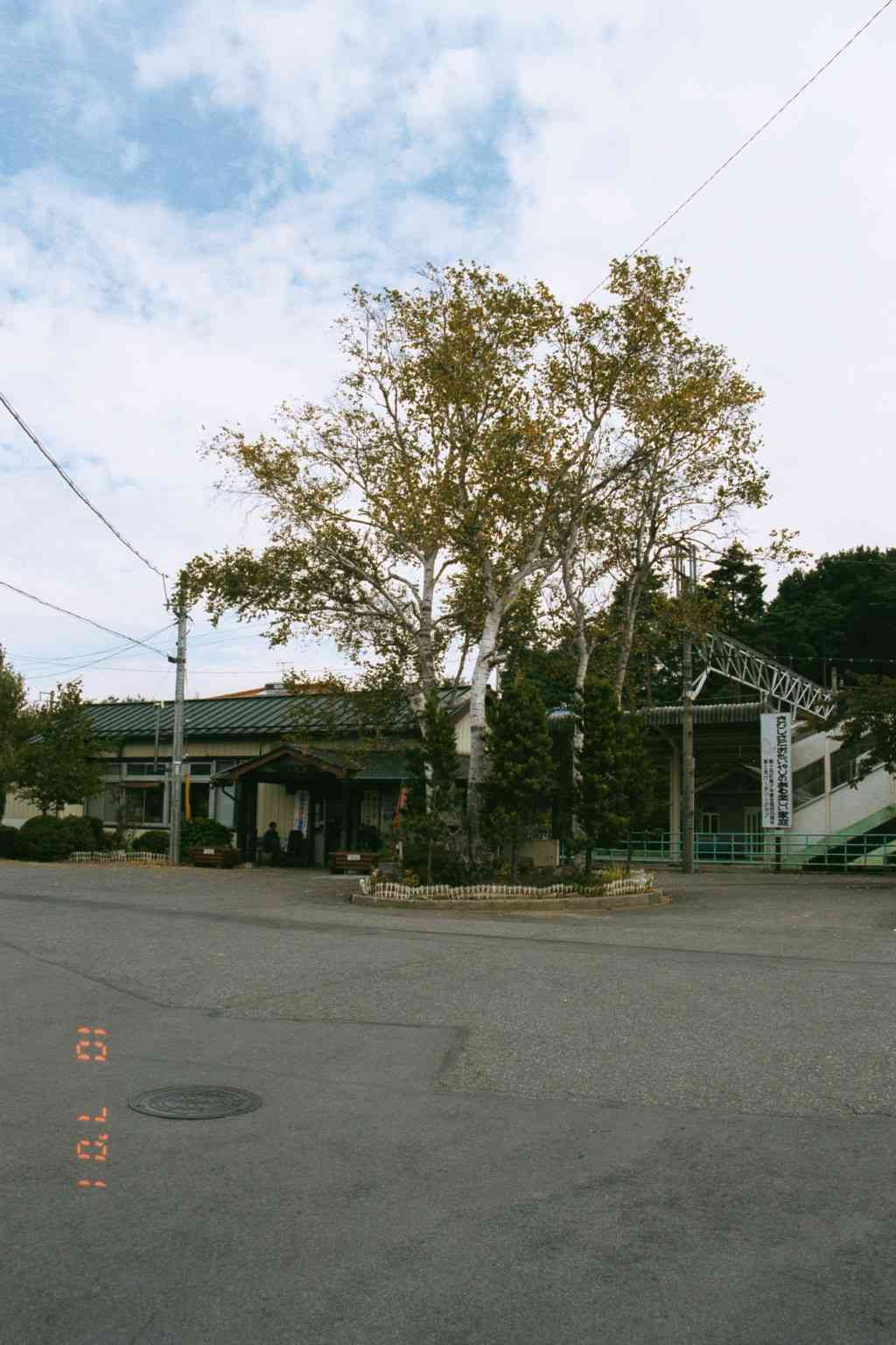I explored around the Station and crossed the bridge to the other platform. Station appeared in fair condition. A bluebird cage is hung at a corner of the Station building near the passenger platform on the trackside. Two elderly men were managing the Station. A collection of "Aoi Tori" photos is hung in the wall at a corner of waiting room, which had a heater. Overall activity at the Station was quiet.